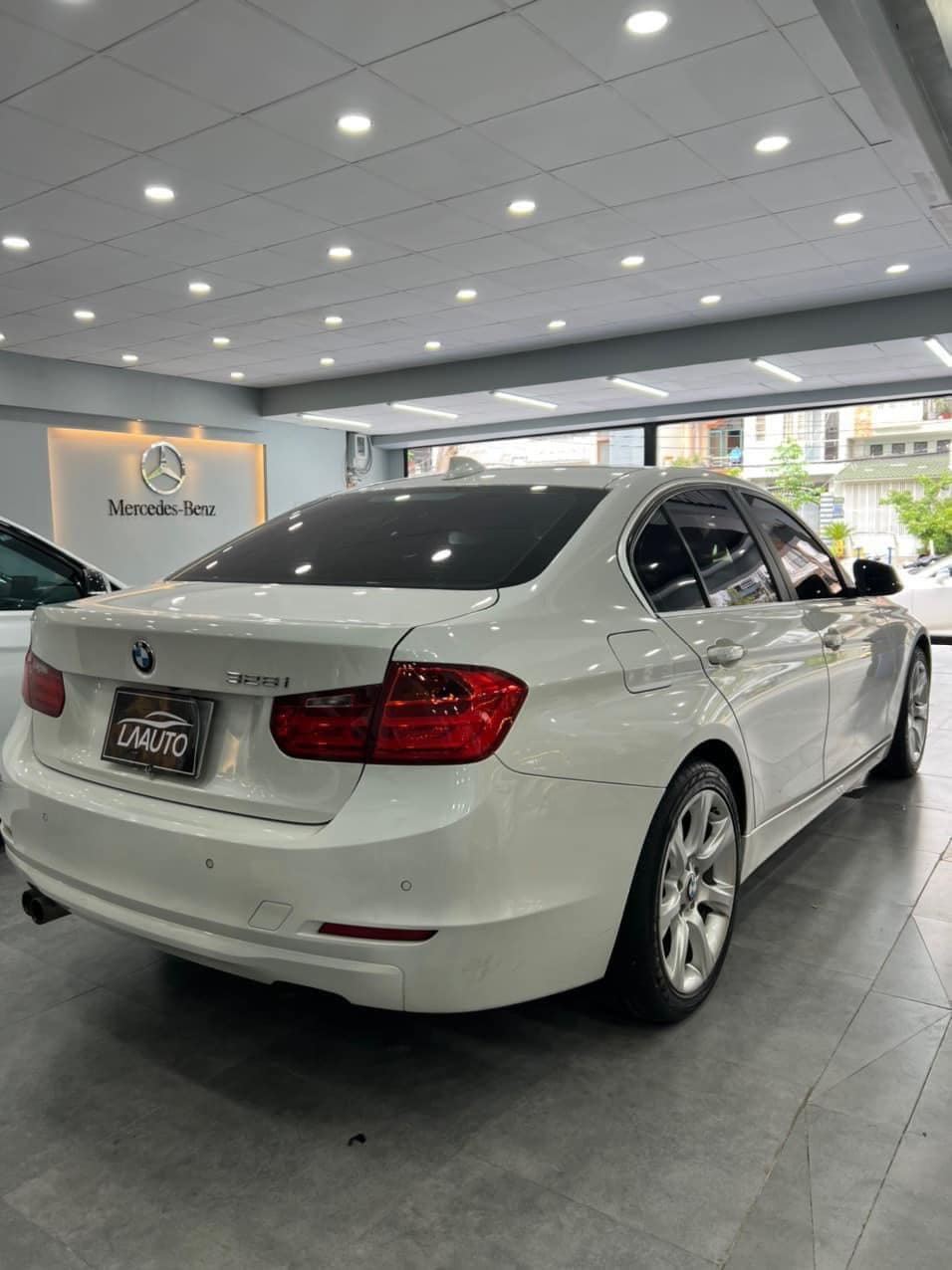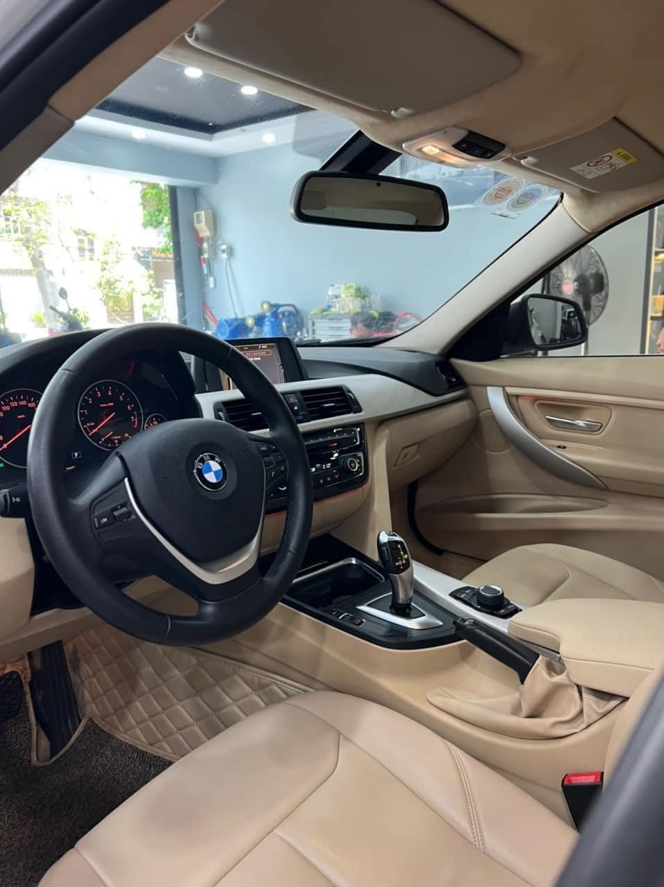BMW 328i model 2015 trắng, nội thất kem.