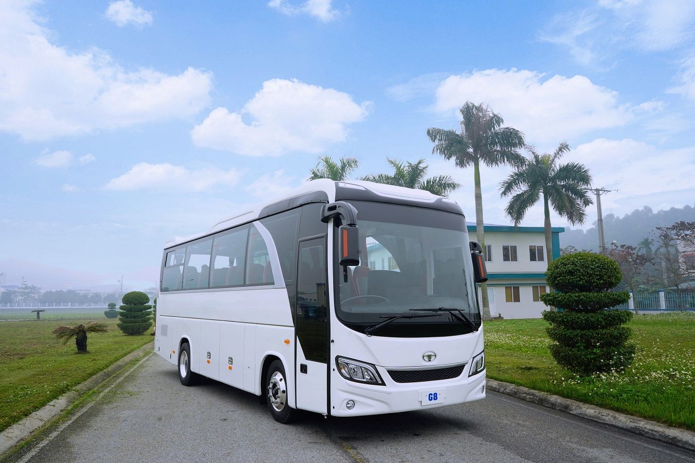 Xe khách 34 chỗ ngồi Model G8 Global nhãn hiệu Daewoo, linh kiện được nhập khẩu đồng bộ 100% theo tiêu chuẩn Daewoo Hàn Quốc và được sản xuất lắp ráp tại nhà Máy Daewoobus Việt Nam (Daewoobus Việt Nam là nhà máy được đầu tư 100% vốn của Tập đoàn Daewoo Hàn Quốc).