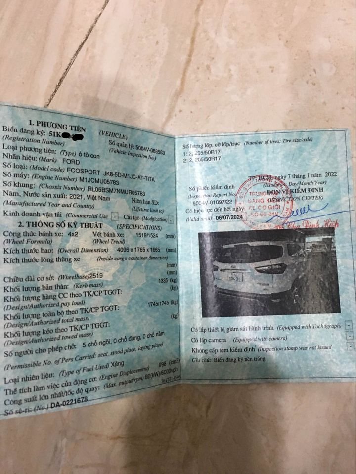 Ford Ecosport 1.0L Titanium máy Turbo tăng áp đklđ 2022 nsx 2021, odo 13000km.