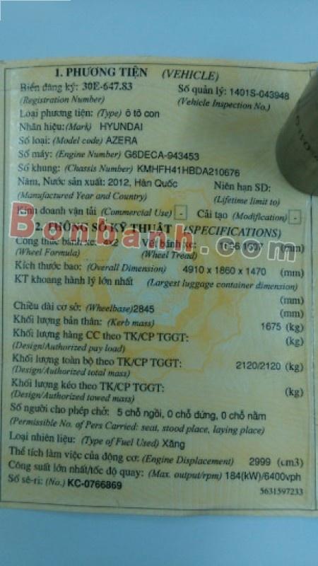 Bán xe cũ Hyundai Azera 3.0MT V6 2012, màu trắng, xe nhập.