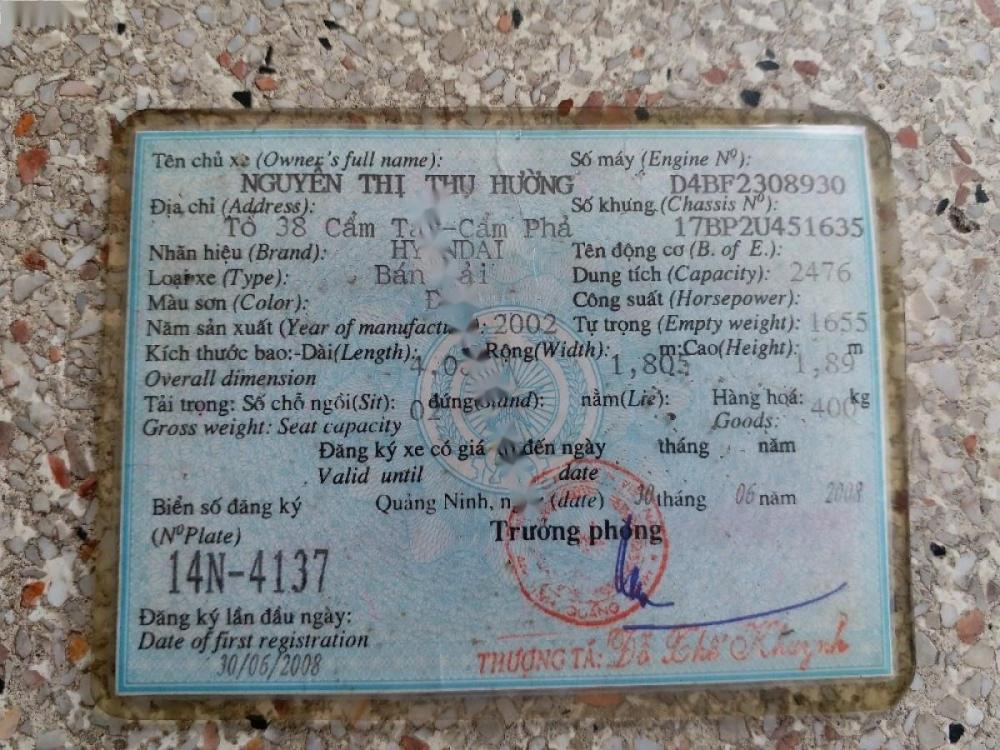 Bán xe Hyundai Innovation Galloper đời 2002, màu đen, nhập khẩu nguyên chiếc chính chủ, 126 triệu.