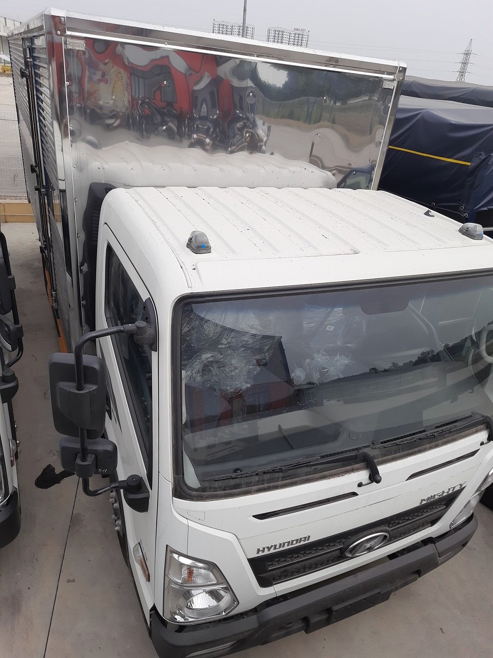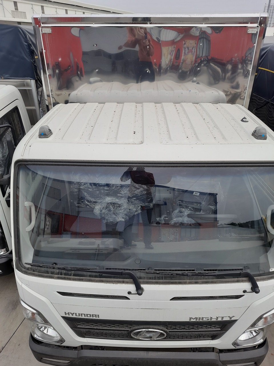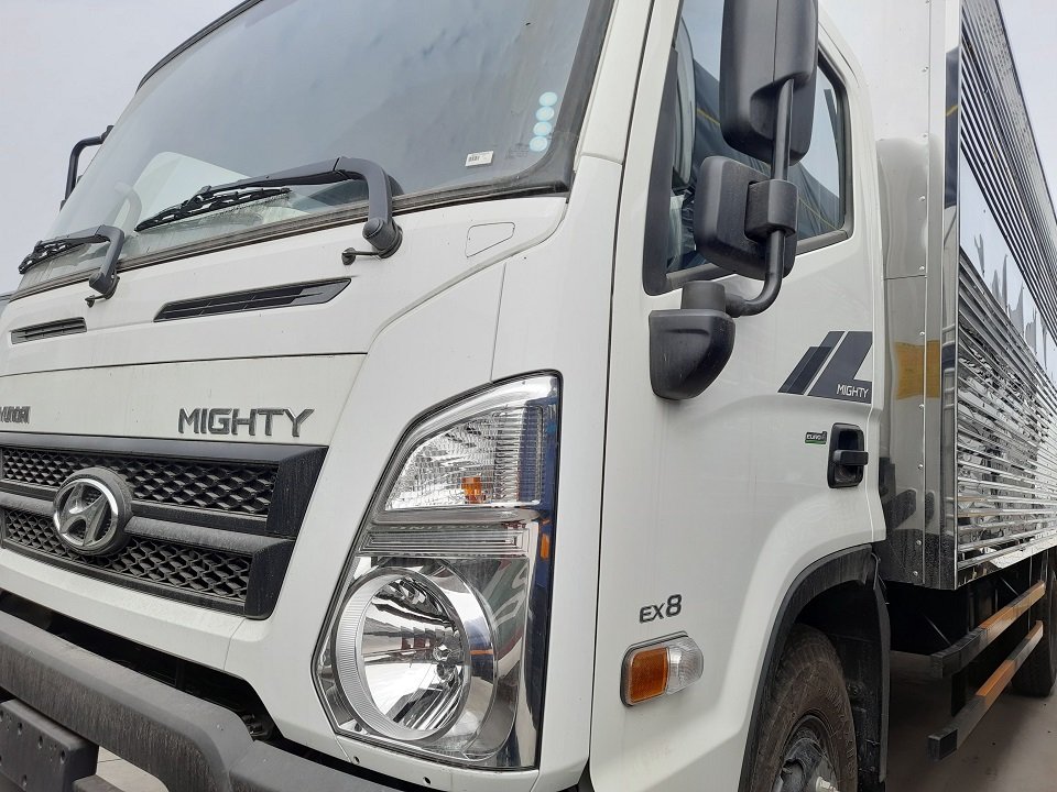 Xe Hyundai Mighty EX8L màu trắng thùng kín làbarn đủ nhập khẩu CKD lắp ráp cụm chi tiết tại nhà máy Hyundai Thành Công. Đây là phiên bản giữ gần như nguyên gốc so với bản nội địa. Các chi tiết chắn bùn, vè nhựa bao quanh động cơ cũng được lắp ráp bởi hàng Hyundai chuẩn Hàn Quốc.
