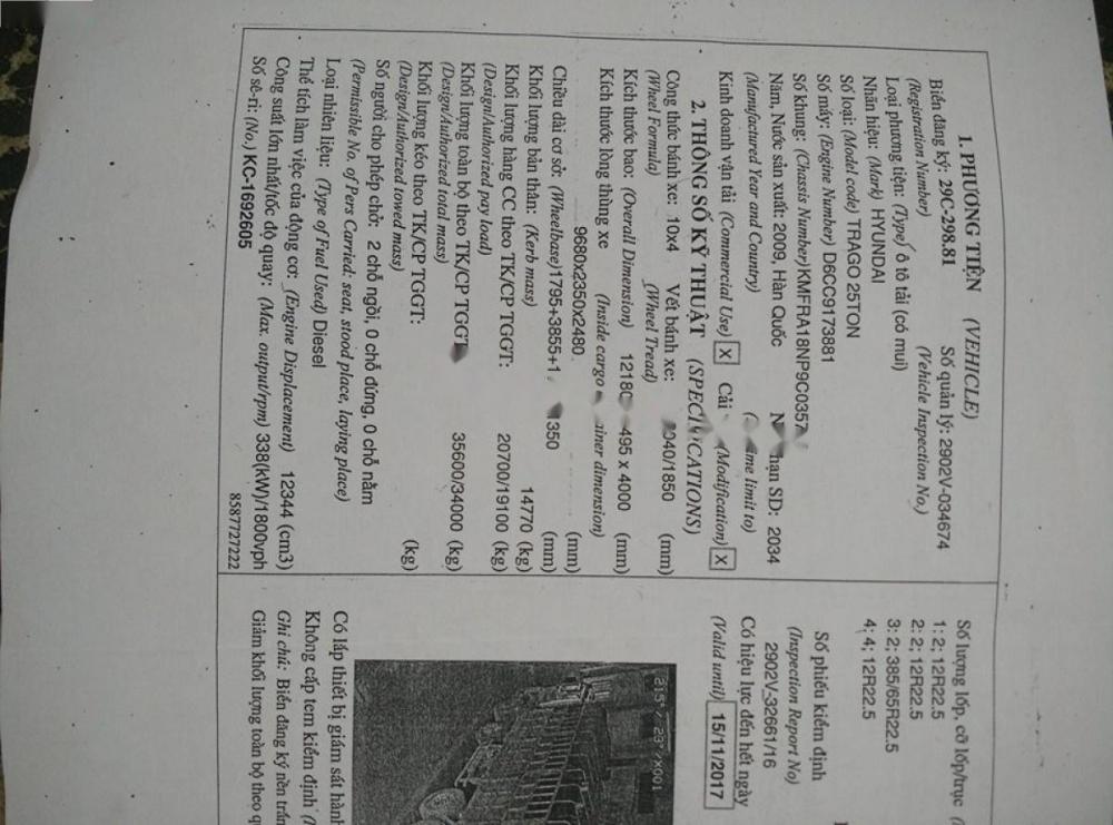 Bán xe Hyundai Trago 5 chân 25 tấn, năm 2009, màu bạc, nhập khẩu.