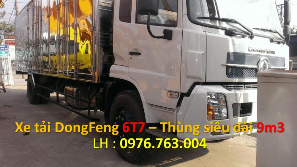 - Xe tải Dongfeng 6.7 tấn hiện tại đang được rất ưa chuộng bởi kích thước thùng siêu dài 9m3 và chiều cao lên đến 2m35 và giá cả cực kỳ hợp lý đối với dòng nhập khẩu nguyên chiếc. Xe tải Dongfeng 6T7 hiện có hai phiên bảng thùng kín và thùng mui bạt nên Quý khách hãy nhanh tay mua cho mình 1 chiếc để chở các mặt hàng mà các dòng xe tải nhẹ khác không chứa hết được.