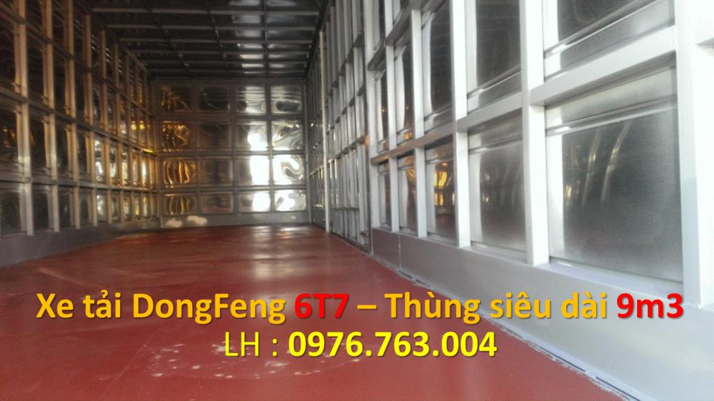 Xe tải Dongfeng 6.7 tấn thùng kín sau khi đăng ký lòng thùng: 9.300 x 2.350 x 2.350 (mm).