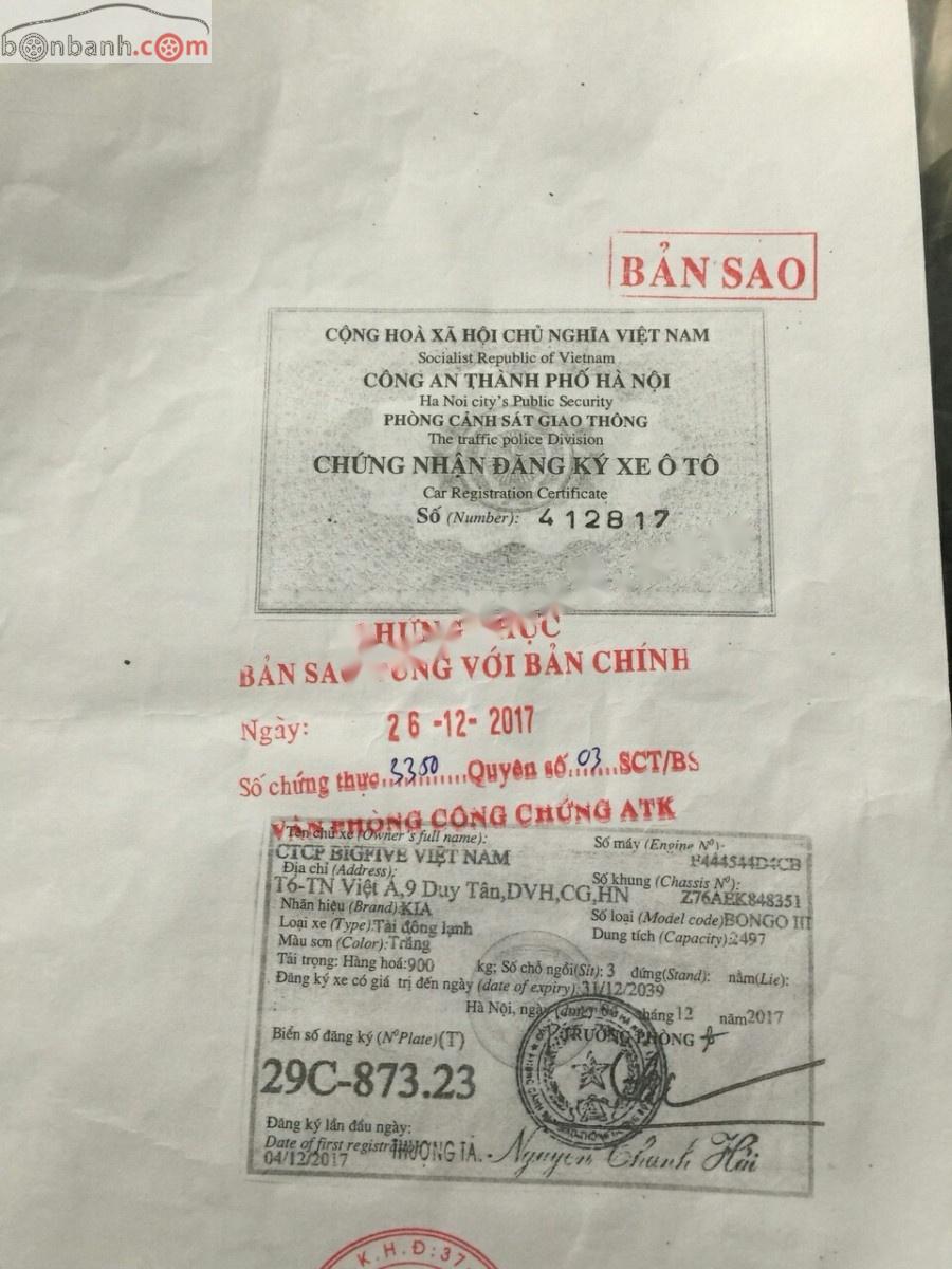 Cần bán lại xe Kia Bongo đời 2017, màu trắng, xe nhập, 400 triệu.