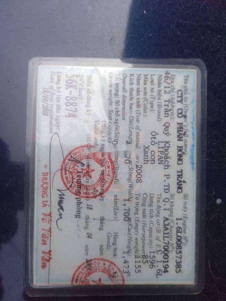 Cần bán lại xe Lifan 520 đời 2008, màu xanh lam.