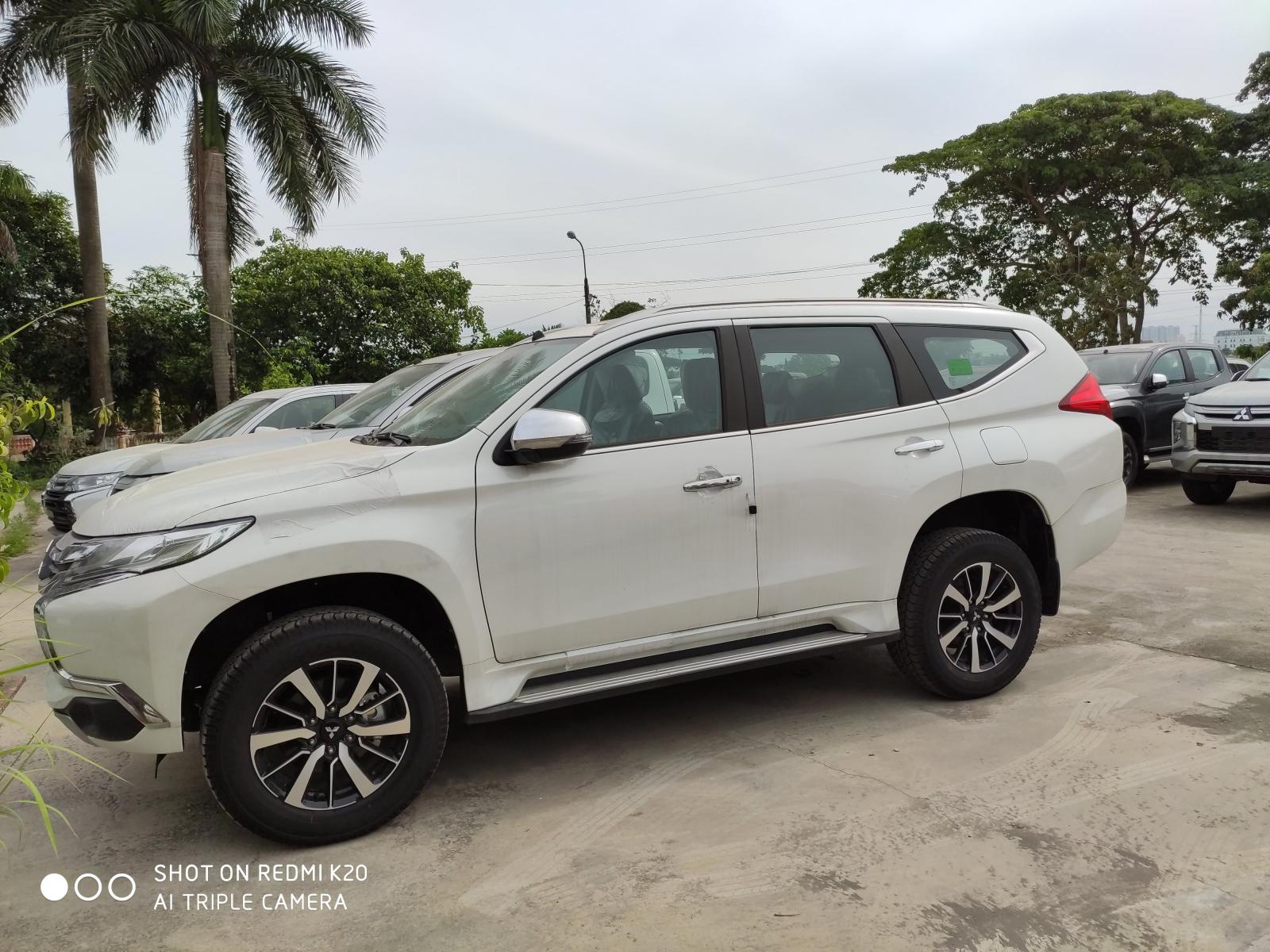 Phần đầu xe nổi bật với mặt ca lăng chữ X, cụm đèn pha Projector sắc nét kết hợp với thanh nẹp viền chrome bóng bẩy, xen giữa là lưới tản nhiệt dạng tổ ong tối màu. Hai đèn sương mù tạo được sự liền lạc nhờ cản trước trải dài theo phương ngang, chi tiết này đồng thời tăng thêm chất cứng cáp, nam tính cho Pajero Sport. Quan sát từ bên cạnh, dáng xe năng động với hốc bánh cao ráo, các gân dập nổi hiện rõ từ vạt đèn trước và sau cũng như ở vòm bánh, trên cửa xe. Các trang bị ngoại thất Mitsubishi cung cấp cho Pajero Sport có thể kể đến như gương chiếu hậu chỉnh/gập điện tích hợp đèn báo rẽ, tay nắm cửa mạ chrome, la-zăng hợp kim đúc thiết kế đa chấu, bậc lên xuống dành cho hành khách, thanh nẹp chrome viền cửa kính, thanh gá nóc thể thao….
