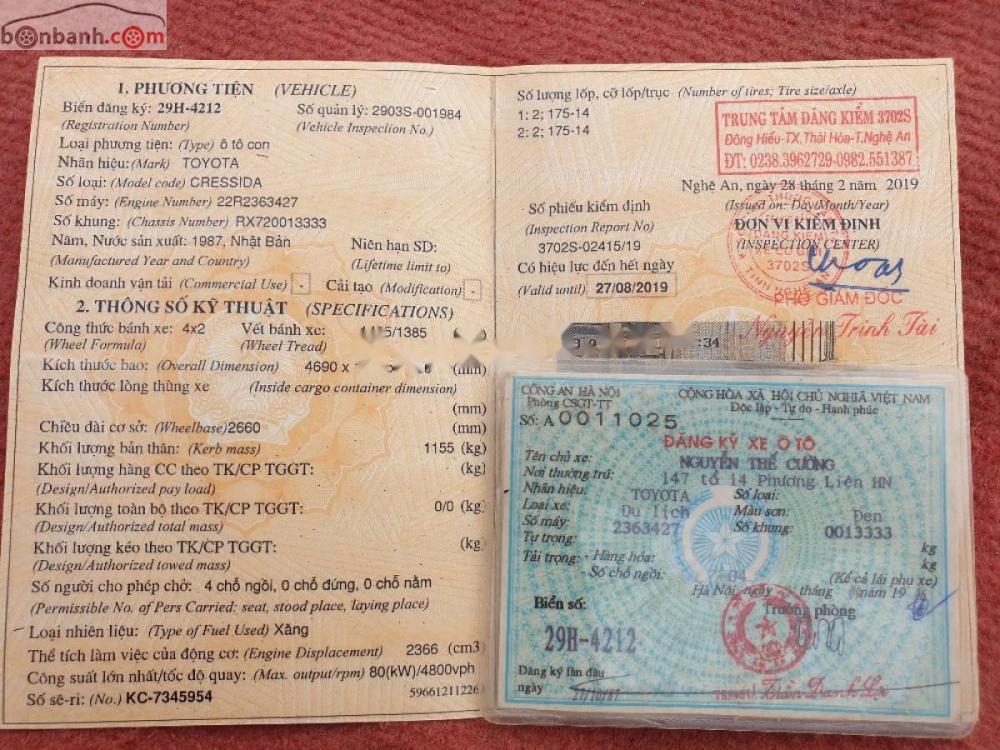 Bán Toyota Cressida XL sản xuất 1987, màu đen, xe nhập.