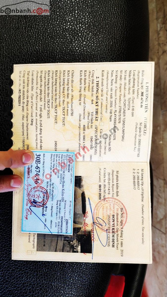 Bán ô tô Toyota Fortuner 4X4AT đời 2009, màu bạc chính chủ giá cạnh tranh.